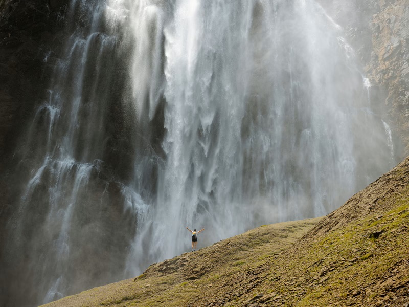 Doch wer die volle Kraft dieses Naturwunders erleben will, macht sich zu Fuss auf den Weg: Über zwei mächtige Kaskaden stürzt das Wasser tosend und schäumend  600 Meter in die Tiefe – ein Erlebnis, das man sehen, hören und spüren kann.